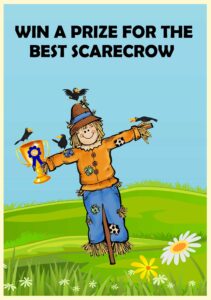 Today is the day when it will be revealed whose scarecrow gained the most votes over the past week. All votes must be in with Val by 4pm today, so it’s not too late to drop by the meadow and take a look. Don’t forget, you don’t have to enter to vote! And there’ll be a Plant, Produce and Cake Stall from midday. (All contributions welcome.) The winners of the first and second prizes will be announced at 6pm. Votes to Val by text, WhatsApp or voicemail. Send your first and second place preferences in a text, WhatsApp or voicemail to organiser, Val Hoare, on the number above, or send them in an e-mail by clicking on the link to her contact form.